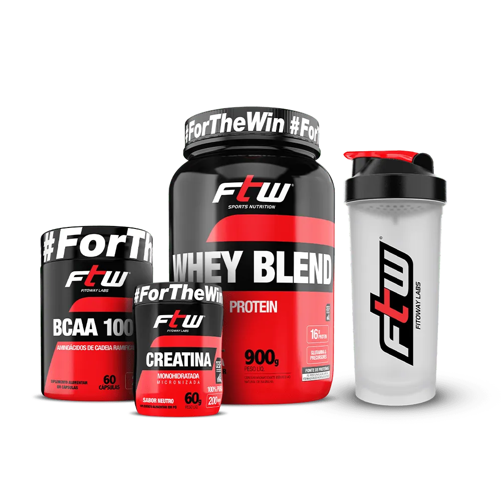 COMBO WHEY ULTRA FTW – WHEY 900G + CREATINA + BCAA E COQUETELEIRA